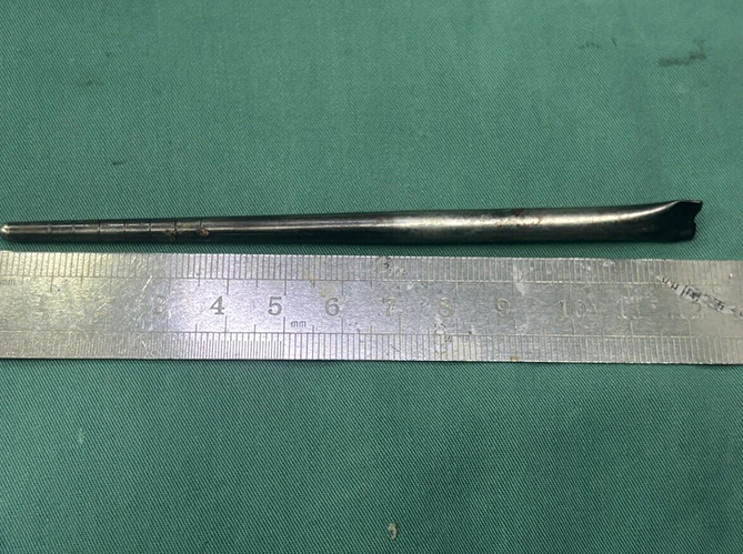 Dalian Teknoloji Üniversitesi Bağlı Merkez Hastanesi Kulak Burun Boğaz Bölümü uzmanları, hayati damarlara ve mukoza dokusuna zarar verme riski bulunan cisim için minimal invaziv (kapalı cerrahi) yöntemini tercih etti. Dr. Huang Weipeng ve ekibi tarafından gerçekleştirilen operasyonla, 12 santimetre uzunluğundaki paslanmaz çelik çubuk dokulardan ayrılarak tek parça halinde çıkarıldı.