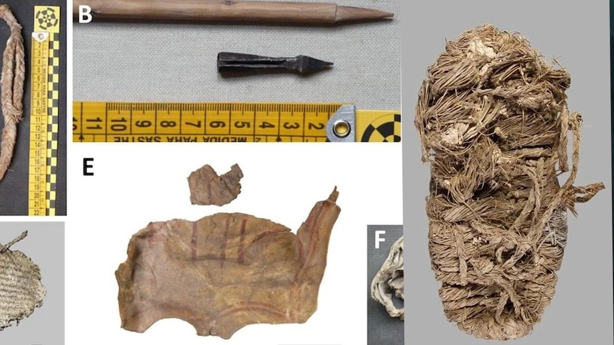 Bilim insanları, 12 iyi korunmuş yuvayı incelediklerinde, katmanların büyük bölümünün kemiklerden oluştuğunu ancak yüzde 9’unun insan yapımı nesnelerden meydana geldiğini belirledi. Bu eşyalar arasında kumaş parçaları, bir arbalet oku, deri kalıntıları ve 25 adet esparto otundan yapılmış obje yer aldı.