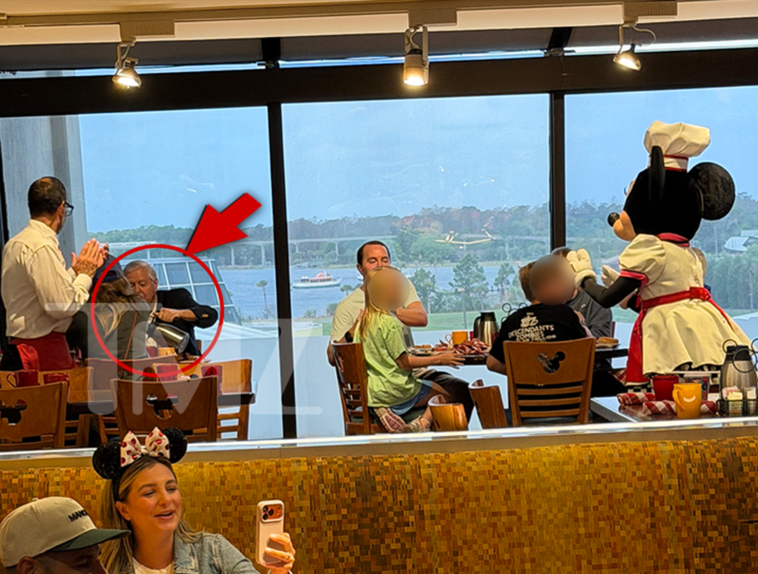 Disney World Resort’ta kahvaltıya giden Graham, Mickey ve Minnie Mouse maskotlarıyla dolu restoranda genç bir kadınla baş başa kahvaltı etti.