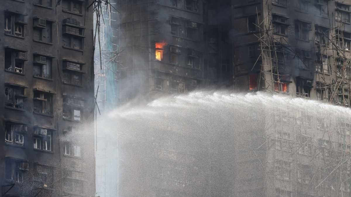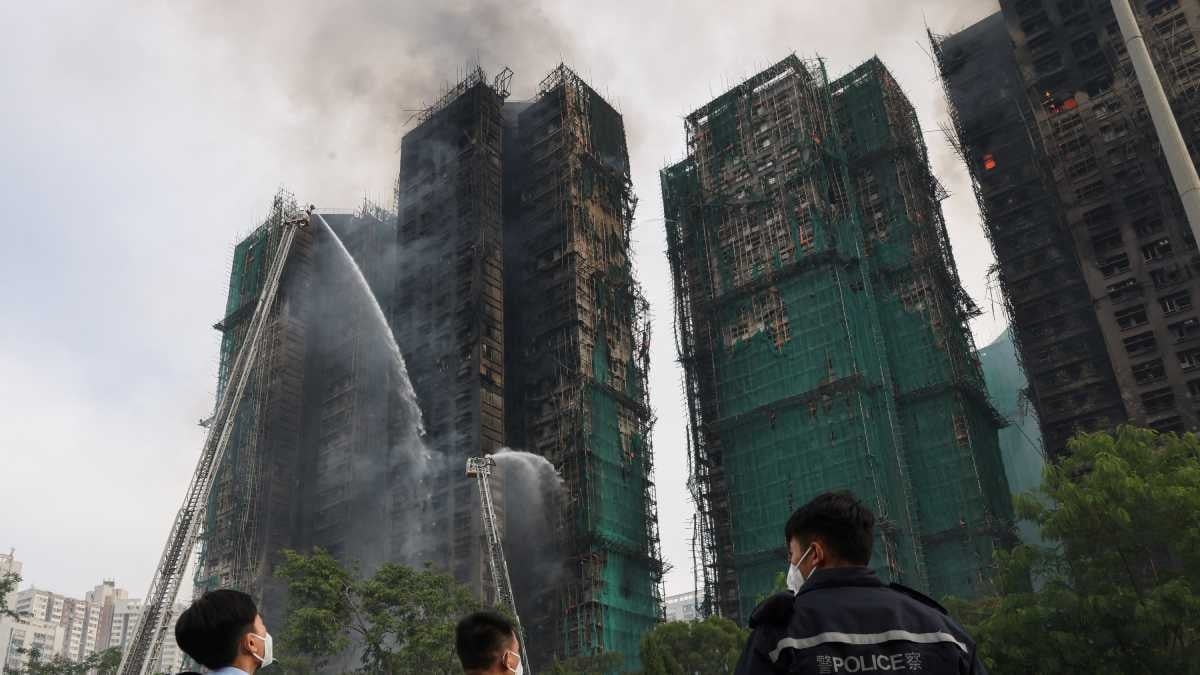 Olay yerinden gelen görüntüler 32 katlı en az iki kulenin hala alev aldığını ve inşaat ağıyla kaplı bambu iskelelerden yoğun duman yükseldiğini gösterdi.