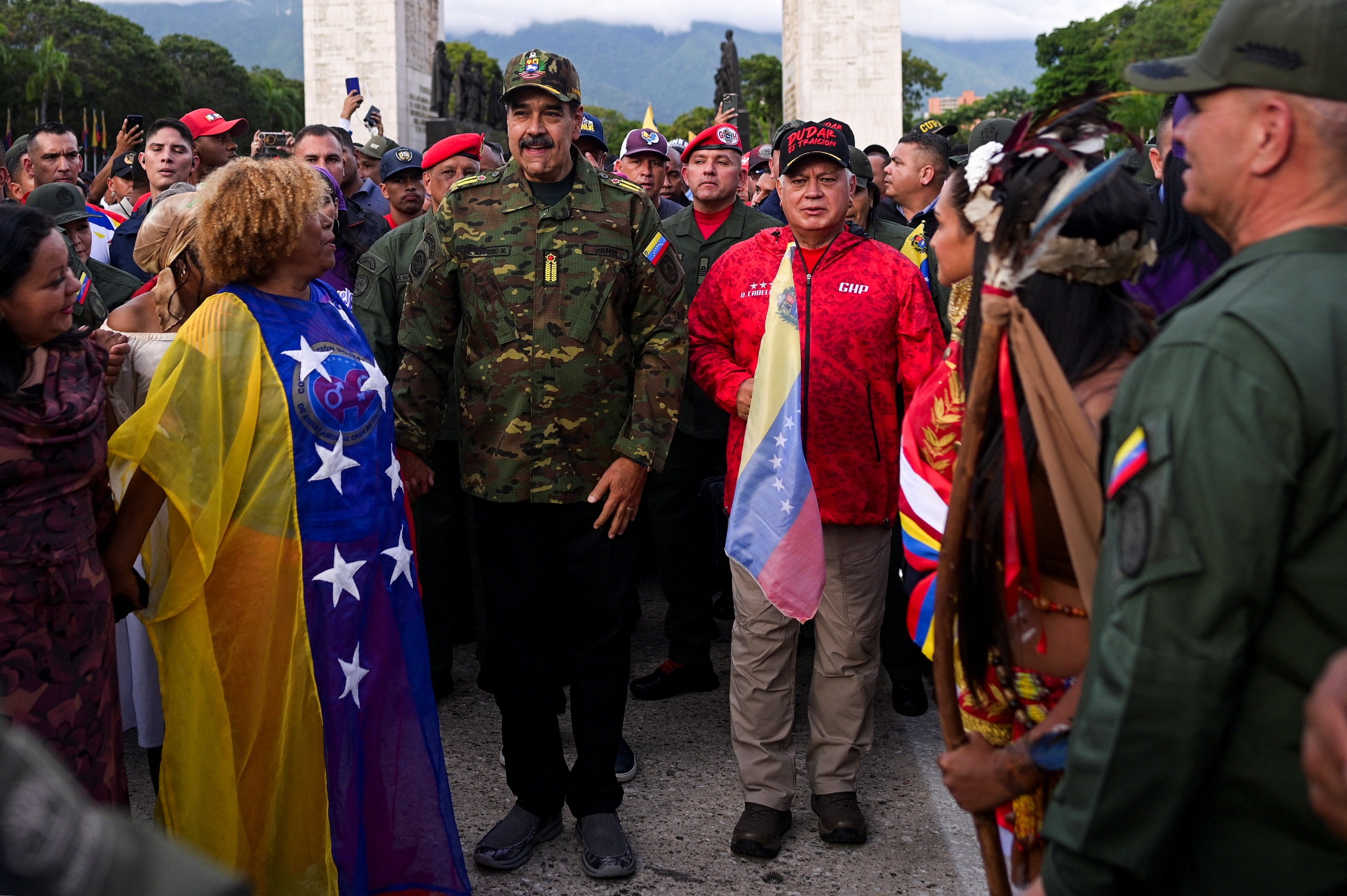 Bugün halkının huzuruna kamuflajlar giymiş olarak çıkan Maduro, “Bolivar’ın kılıcını” kuşandı.