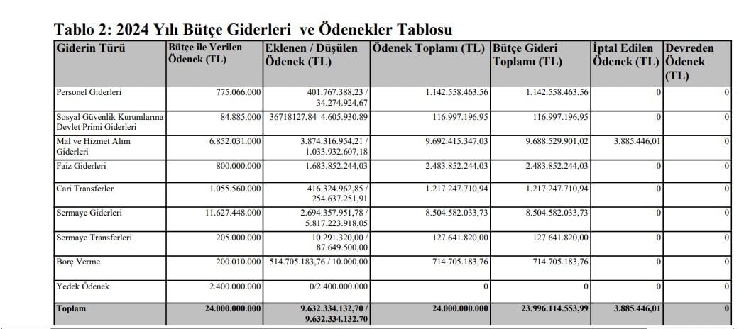 Sayıştay denetçilerinin yaptıkları incelemede, belediyenin 2022- 2024 yılları arasında (3 yıl) faize 300 milyon 808 bin 867 lira verdiğini de tespit etti.