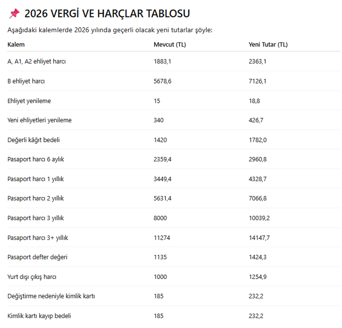 2026 yılı itibarıyla uygulanacak vergi ve harç düzenlemeleri, yeniden değerleme oranı çerçevesinde birçok alanda değişiklik getiriyor. Bakan Şimşek’in, “Vergi ve harçları yeniden değerleme oranı yerine enflasyon hedeflerini dikkate alarak daha düşük oranda artırmak için çalışmalarımızı sürdürüyoruz” açıklaması ise gözlerin Bakanlık tarafından yapılacak nihai duyuruya çevrilmesine neden oldu.