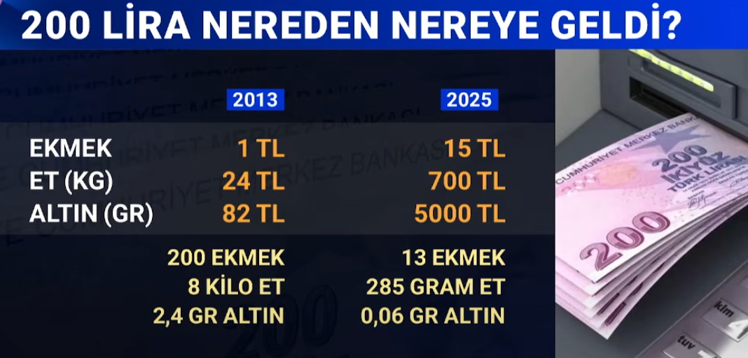 2013 yılında 200 adet ekmek alınabiliyorken, 2025 yılında 13 tane ekmek alınabiliyor.