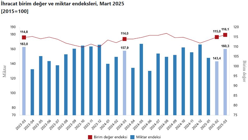 Türkiye İstatistik Kurumu (TÜİK) ‘Dış Ticaret Endeksleri, Mart 2025‘ bültenini yayımladı.