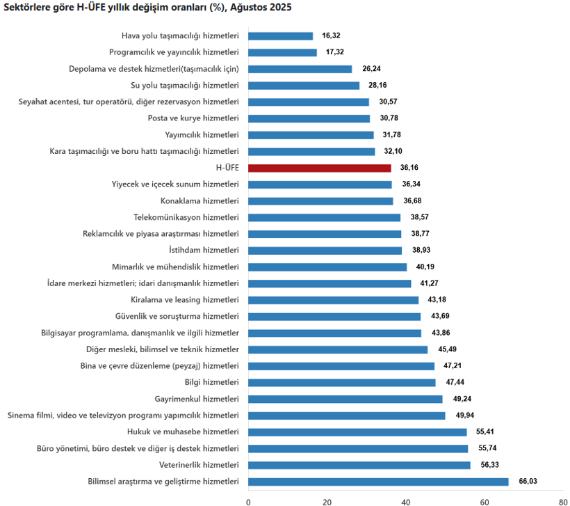 Türkiye İstatistik Kurumu (TÜİK) ‘Hizmet Üretici Fiyat Endeksi, Ağustos 2025‘ raporunu yayımladı.