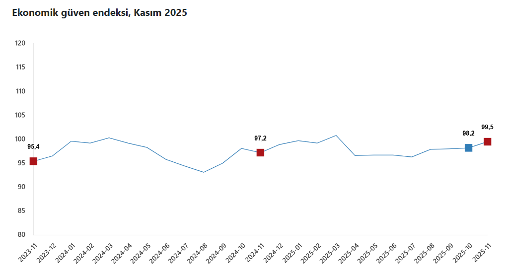 Türkiye İstatistik Kurumu (TÜİK) kasım ayına ilişkin ekonomik güven endeksi verilerini açıkladı.