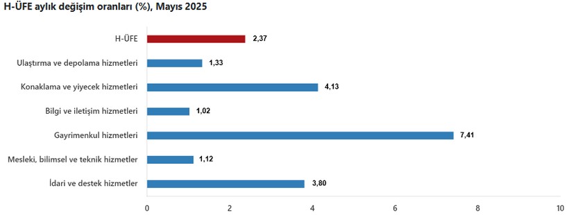 Türkiye İstatistik Kurumu (TÜİK) mayıs ayı ‘Hizmet Üretici Fiyat Endeksi’ (H-ÜFE) datalarını yayımladı.