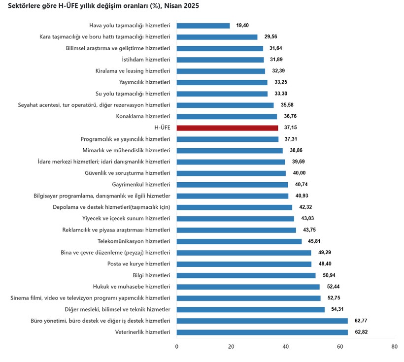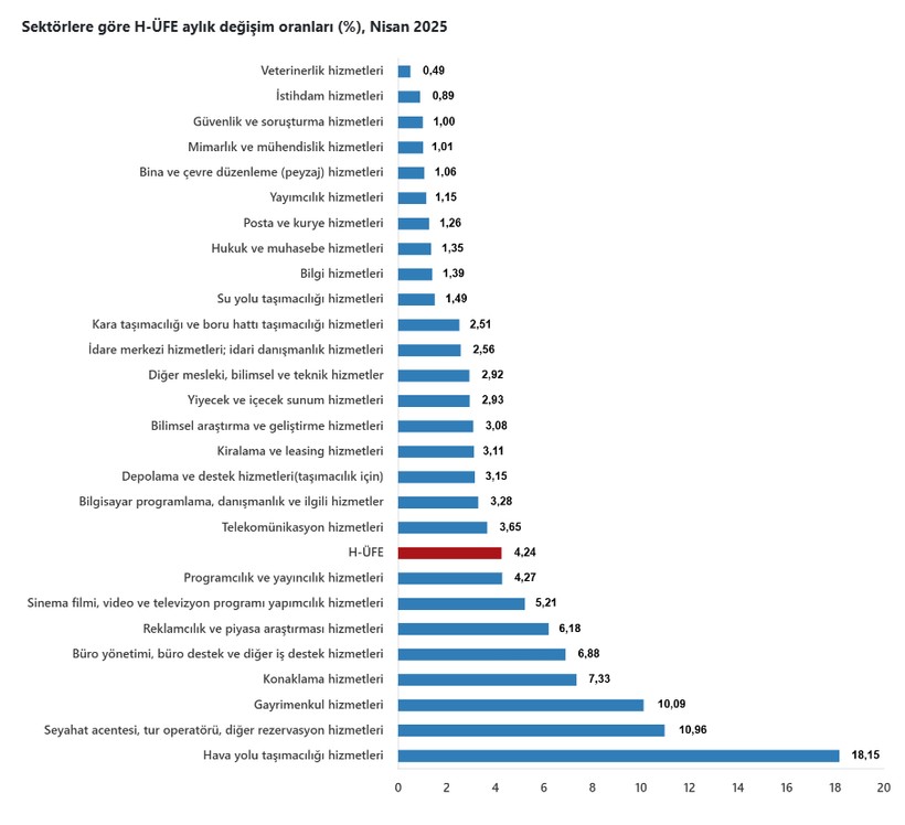 Türkiye İstatistik Kurumu (TÜİK) nisan ayına ait hizmet üretici enflasyonu (H-ÜFE) bilgilerini açıkladı.