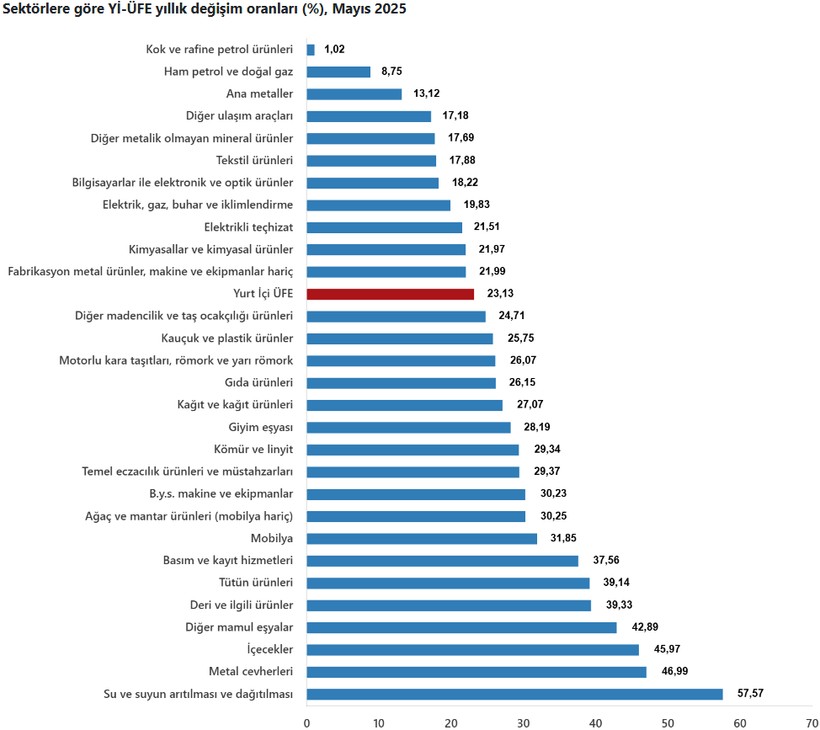 Türkiye İstatistik Kurumu (TÜİK), Mayıs 2025 periyoduna ait Yurt İçi Üretici Fiyat Endeksi (Yİ-ÜFE) bilgilerini açıkladı. Buna nazaran, Yİ-ÜFE bir evvelki aya nazaran yüzde 2,48, Aralık 2024’e nazaran yüzde 12,92, geçen yılın tıpkı ayına nazaran ise yüzde 23,13 oranında artış gösterdi. On iki aylık ortalamalara nazaran yıllık artış yüzde 30,17 olarak kaydedildi.