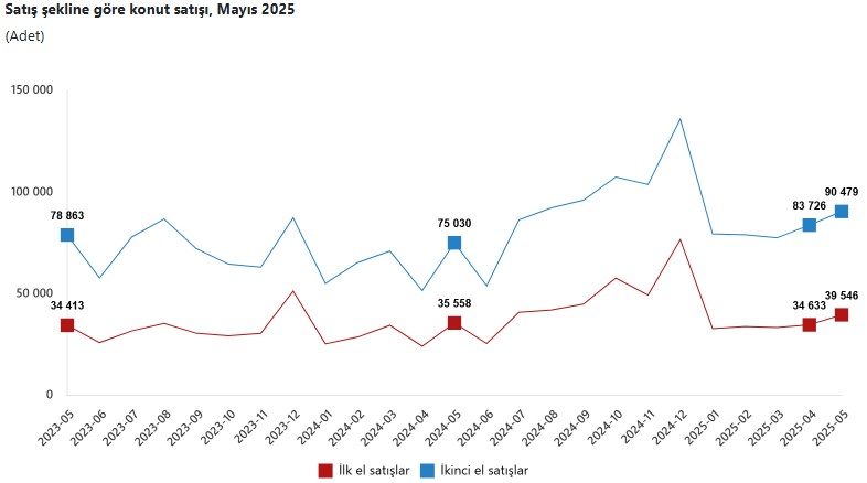 Türkiye genelinde ikinci el konut satış sayısı Mayıs ayında bir evvelki yılın birebir ayına nazaran yüzde 20,6 oranında artarak 90 bin 479 oldu. Toplam konut satışları içinde ikinci el konut satışının hissesi yüzde 69,6 oldu. İkinci el konut satışları Ocak-Mayıs devrinde ise bir evvelki yılın birebir devrine nazaran yüzde 29,0 oranında artarak 410 bin 115 olarak gerçekleşti.