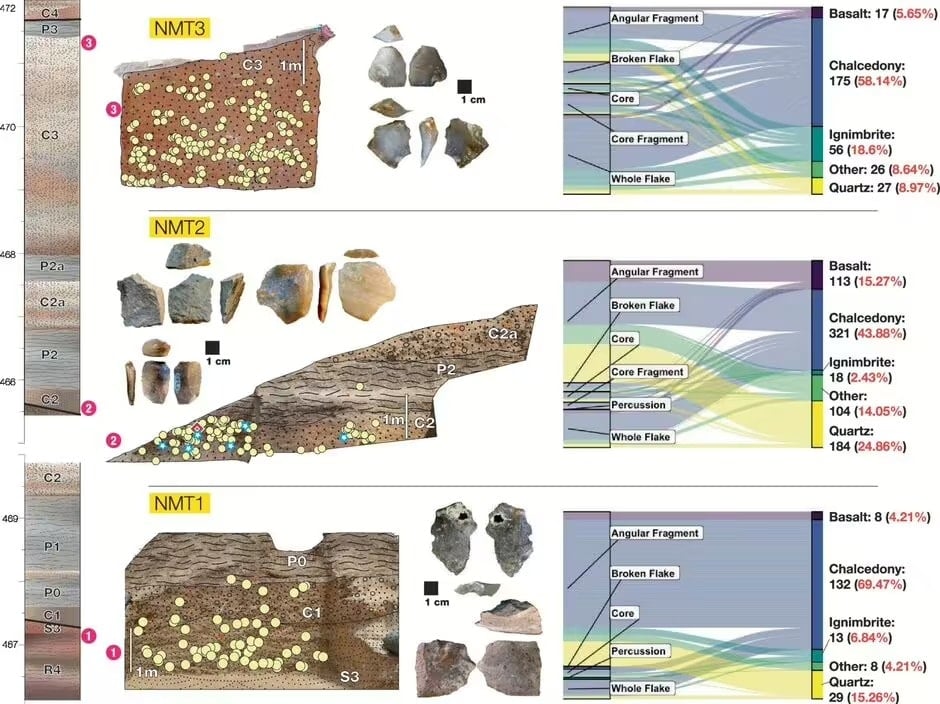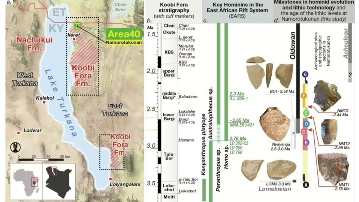 Kenya’nın kuzeybatısındaki Turkana Havzası’nda yer alan Namorotukunan adlı arkeolojik bölgede yapılan kazı sonuçları, keskin yongalar, çekiç taşları ve taş çekirdeklerinden oluşan yaklaşık 1.300 antik alet bulundu. Ortaya çıkarılan bu bulgular, erken dönem insanların sanılandan yüz binlerce yıl önce bile sürekli olarak alet kullandığını gösteriyor.