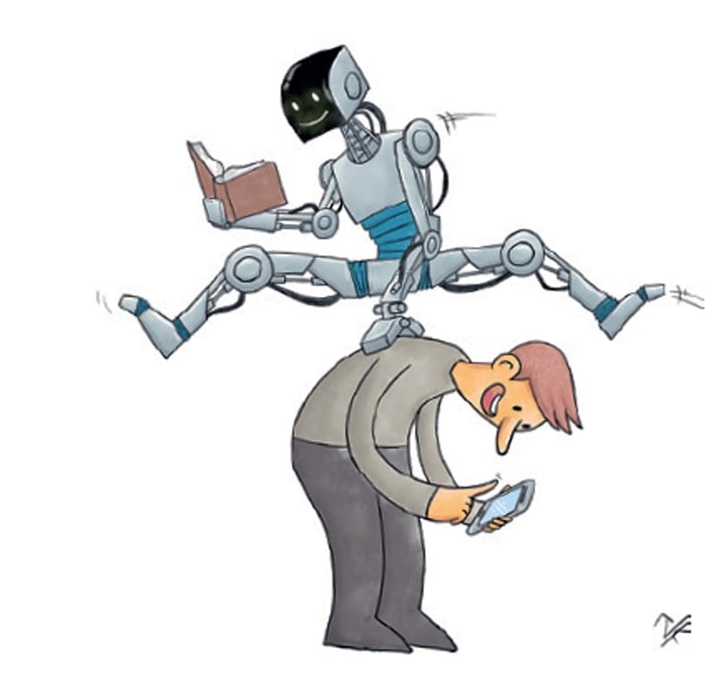 Teknolojinin insan hayatındaki giderek artan etkisini, makineleşmeyi ve yapay zekâ devrimini karikatür sanatının evrensel ve eleştirel diliyle masaya yatırıyor.