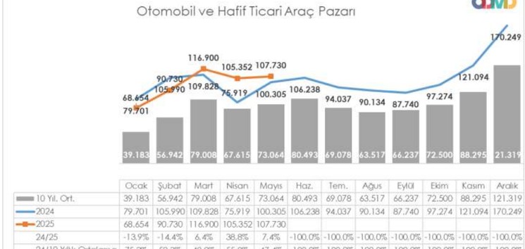 Otomotiv Distribütörleri ve Mobilite Derneği (ODMD) datalarına nazaran, Türkiye araba ve hafif ticari araç pazarı mayıs ayında yüzde 7,4 artışla 107 bin adedi aştı. Üç aydır süren 100 bin üzeri satış grafiği dikkat çekti.