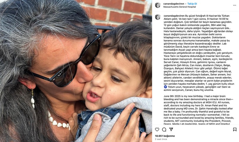 * Vefatı teğet geçtim, çok şükür diyorum. Can oğlum, kıymetli eşim Murat, Dağdeviren ve Mercan (Hüseyin babam, Seher annem, İnci ablam) ailelerim, candan sevdiklerim, arayıp merak edenler, sesini duyuranlar, iletiler atanlar ve yarım kalan projelerim için yine hayata merhaba dedim; 1. yaş günüm kutlu olsun. Yolum uzun, heyecanım yüksek, gençliğim var! Seni ve azmini seviyorum, Canan; bunu hiç unutma.